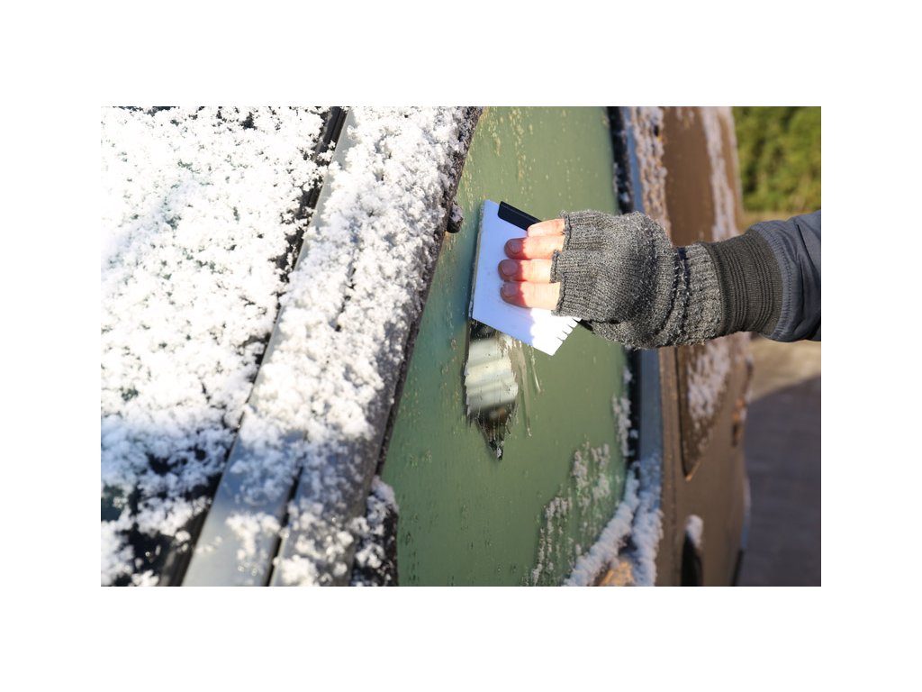 Škrabka na led s třemi různými konci - plochým, gumovým a zubatým. Vyrobeno z neprůhledného plastu.Doplňkové parametry
