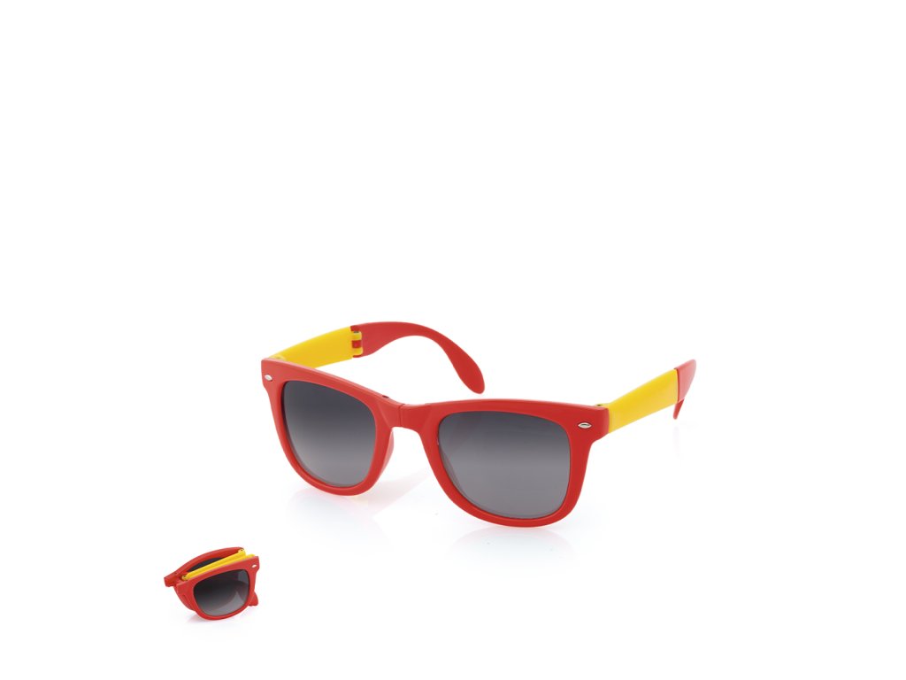 Skládací sluneční brýle s ochranou UV400 v klasickém designu. S lesklým rámem ve veselých barvách a černými čočkami.