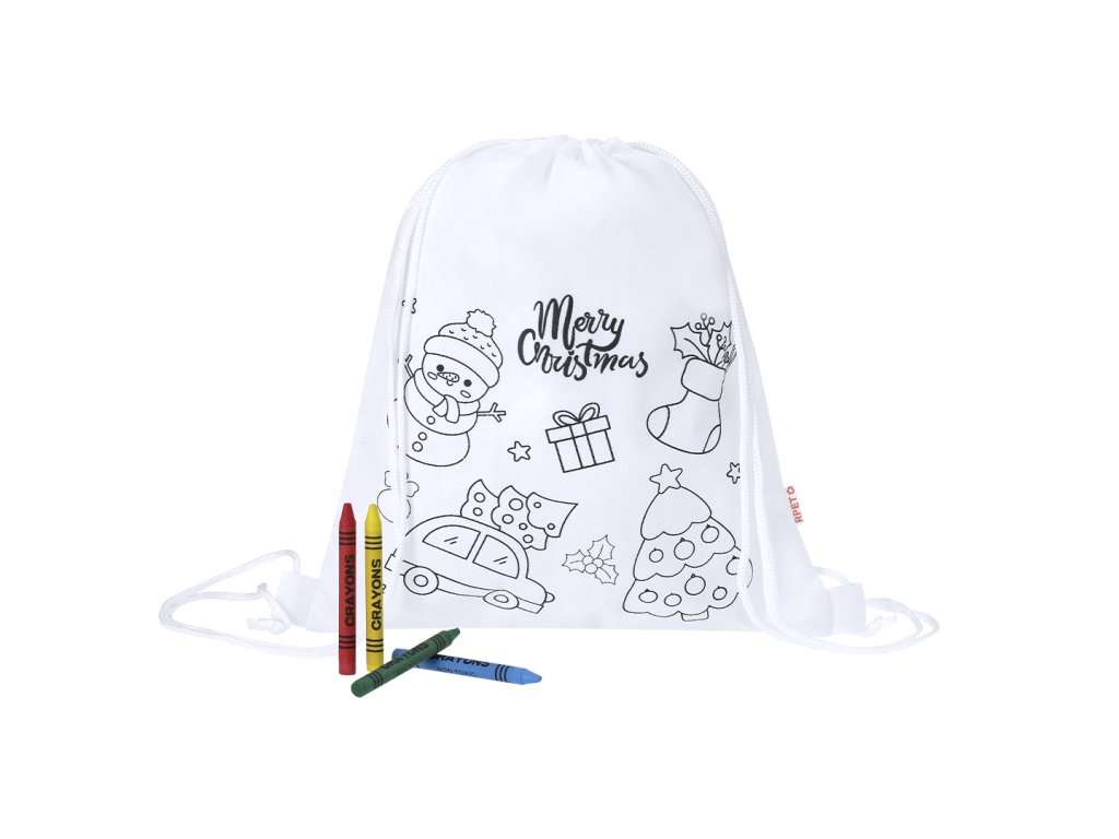 Dětský vánoční batoh z netkaného materiálu RPET, speciálně navržený pro vybarvování pastelkami. S veselými vánočními kresbami, včetně 4 pastelek v různých barvách. Má samozavírací šňůrky a látkové zapínání a z vnější strany štítek RPET. materiál RPET je vyroben z recyklovaného plastu, čímž podporuje opětovné využití plastového odpadu a pomáhá udržitelnosti planety.Diskuze