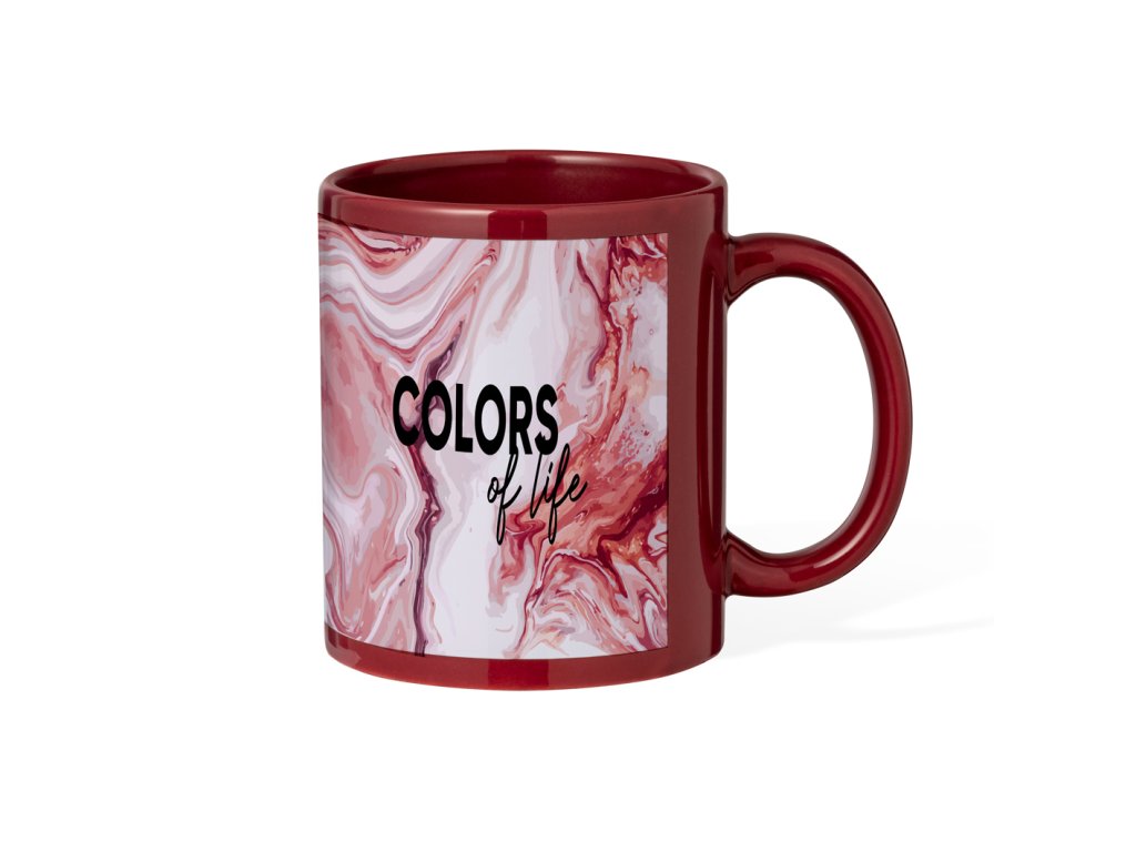 keramický hrnek o objemu 350 ml. K dispozici v různých barvách, se speciálním sublimačním potiskem po celém obvodu hrnku. Dodáváno jednotlivě v kraftové krabici.