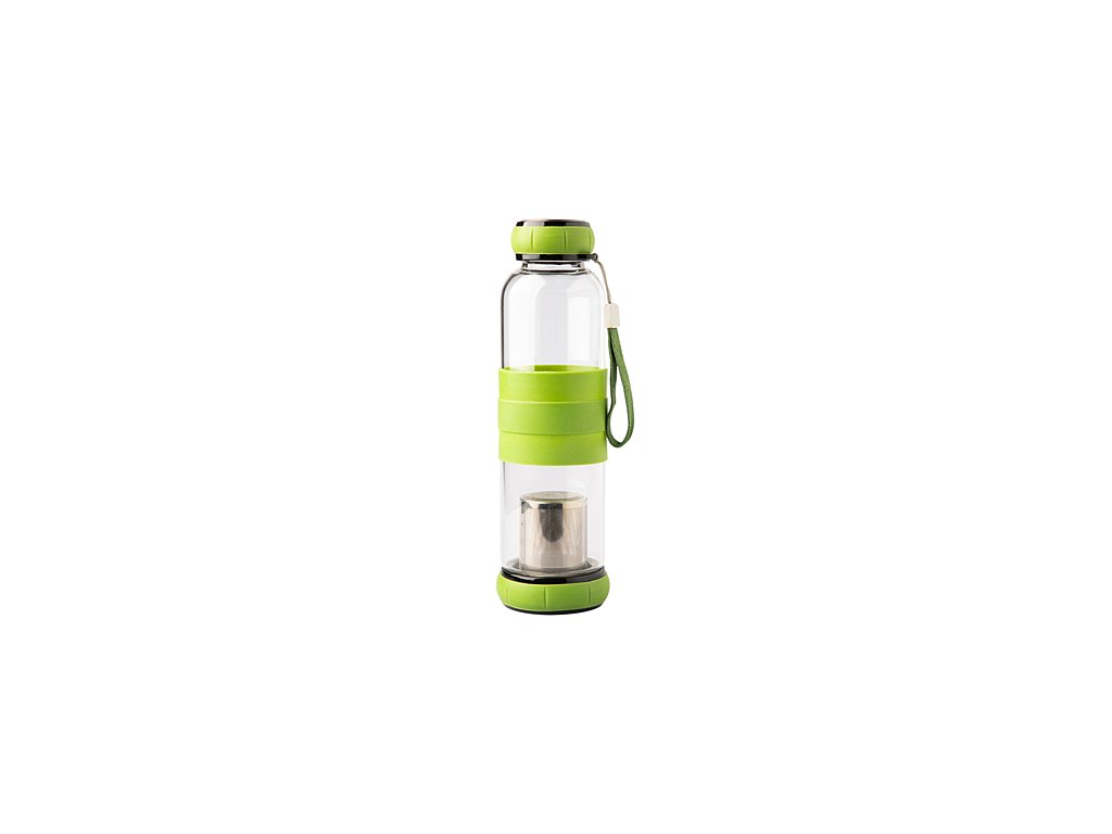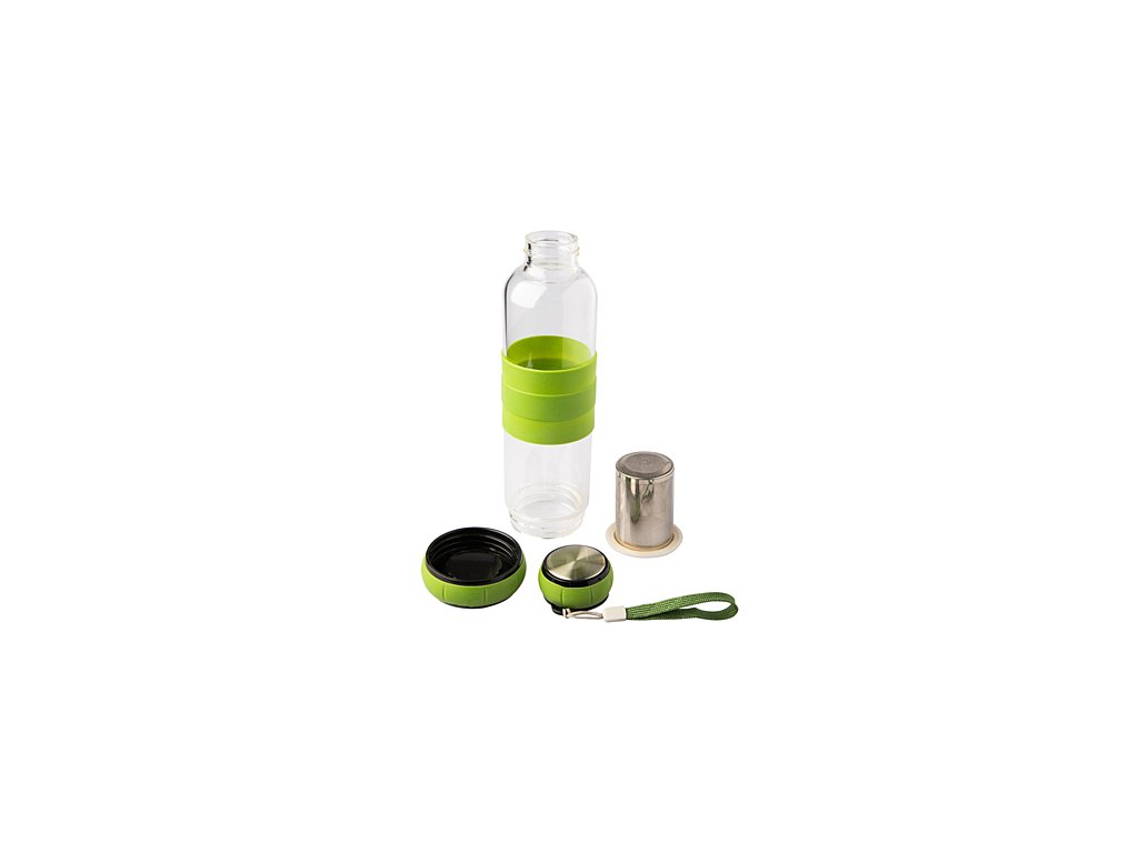 Láhev z borosilikátového skla s infuzérem na čaj. Dodává se se silikonovým kroužkem a poutkem na ruku. Objem 550 ml.Doplňkové parametry