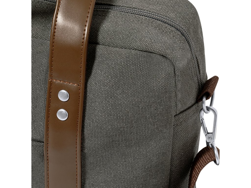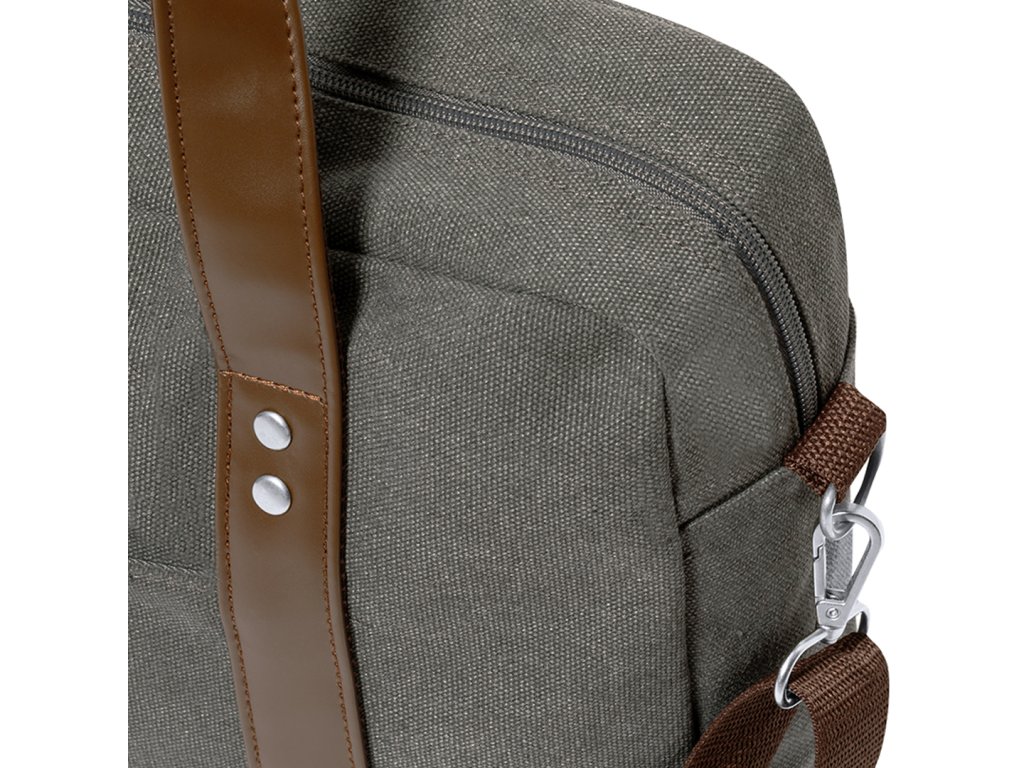 Taška přes rameno a pouzdro na doklady v nadčasovém designu, vyrobená z odolného plátna o gramáži 475 g/m2 v šedé barvě, s koženkovými popruhy a funkčním nastavitelným ramenním popruhem. Uvnitř polstrovaná, s přihrádkou na notebook do velikosti 15 palců. Včetně praktické kapsy na vnější straně. Dodáváno v samostatném recyklovaném sáčku.Diskuze