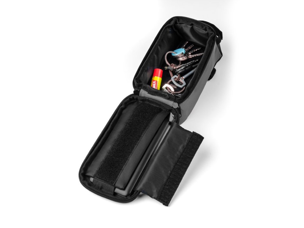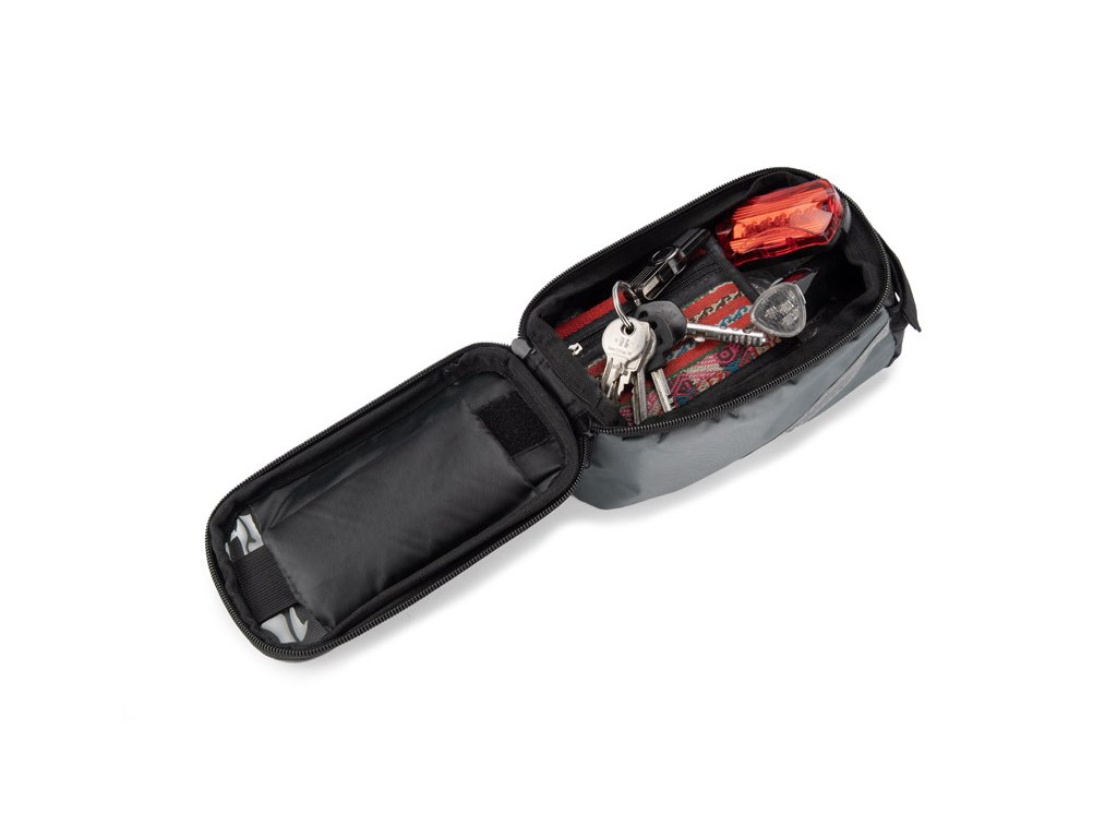 Ta taška se pevně připojuje k rámu kola a má prostornou zipovou kapsu na malé předměty. Navíc VELO poskytuje přístup k sluchátkům a kapsu s dotykovou fólií pro váš smartphone, která vám umožní používat ho, zatímco zůstává v tašce. Pohled na navigaci nebo ovládání přehrávače hudby už není problém - i když jedete na kole.Doplňkové parametry