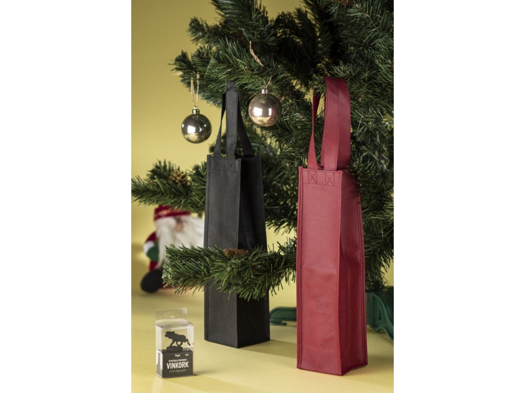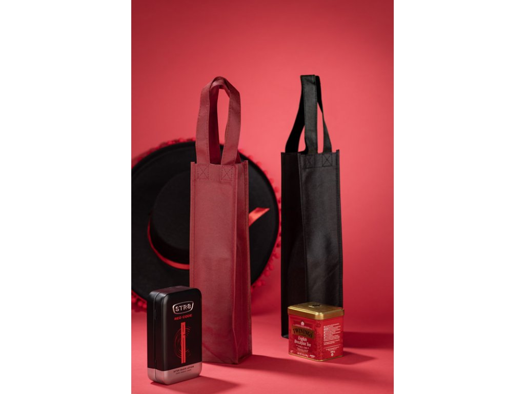 Taška BINU je ideálním řešením pro estetické a praktické dárkové balení lahve na víno. Je lehký, odolný a po složení zabírá velmi málo místa. Má široké a pohodlné rukojeti, které zvyšují bezpečnost přepravovaného produktu. Opakovaně použitelná taška. Vyrobeno z netkaného materiálu.Doplňkové parametry