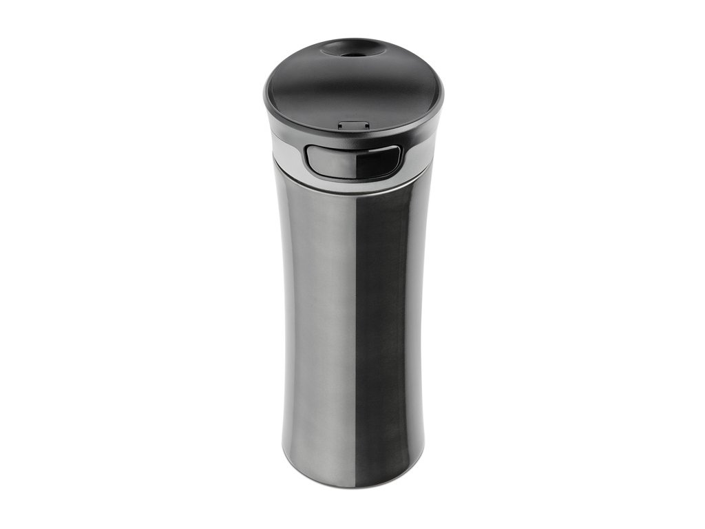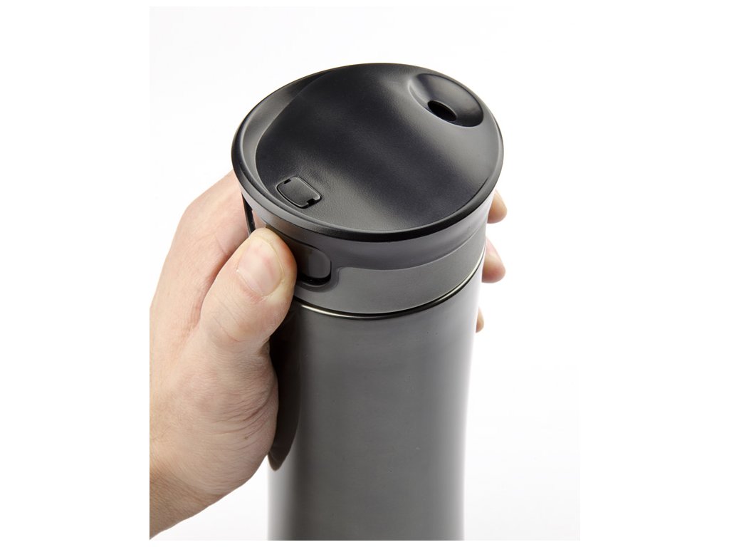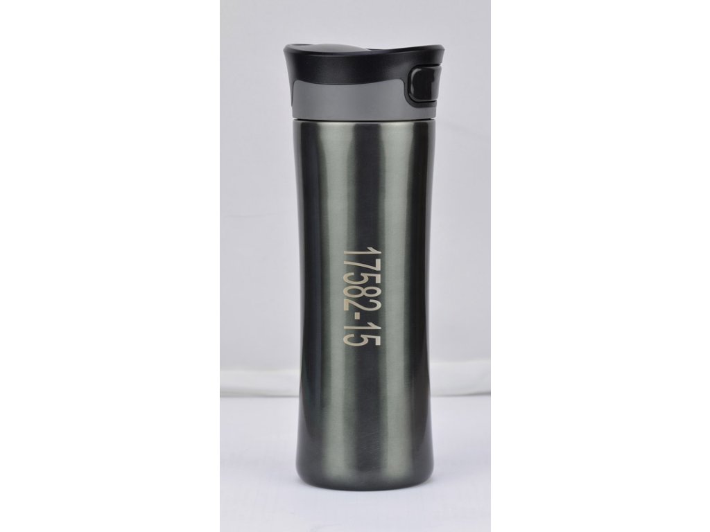 Tato hrnek s neprůsakujícím víčkem může být také použit jako vakuová láhev. Udržuje teplotu až 10 h. Pohodlné použití - pro odemknutí víčka stiskněte tlačítko na víčku. Víčko se automaticky uzavře, když uvolníte tlačítko. Logo bude vyryto.Doplňkové parametry