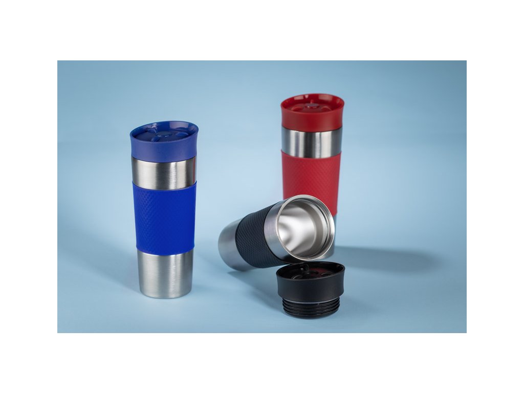 Termohrnek RONDE je praktická, pohodlná a funkční pomůcka. Gumička na hrnku zajišťuje bezpečné a pohodlné uchopení. Má uzávěr se systémem click, který zajišťuje, že neteče a pohodlně se z něj pije z obou stran. Hrnek je vyroben z nerezové oceli. Gumový pásek v barvě uzávěru.Doplňkové parametry