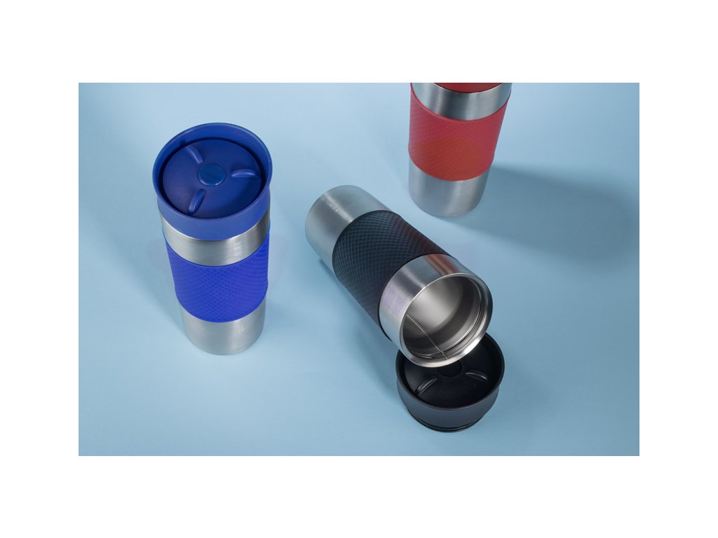 Termohrnek RONDE je praktická, pohodlná a funkční pomůcka. Gumička na hrnku zajišťuje bezpečné a pohodlné uchopení. Má uzávěr se systémem click, který zajišťuje, že neteče a pohodlně se z něj pije z obou stran. Hrnek je vyroben z nerezové oceli. Gumový pásek v barvě uzávěru.Doplňkové parametry
