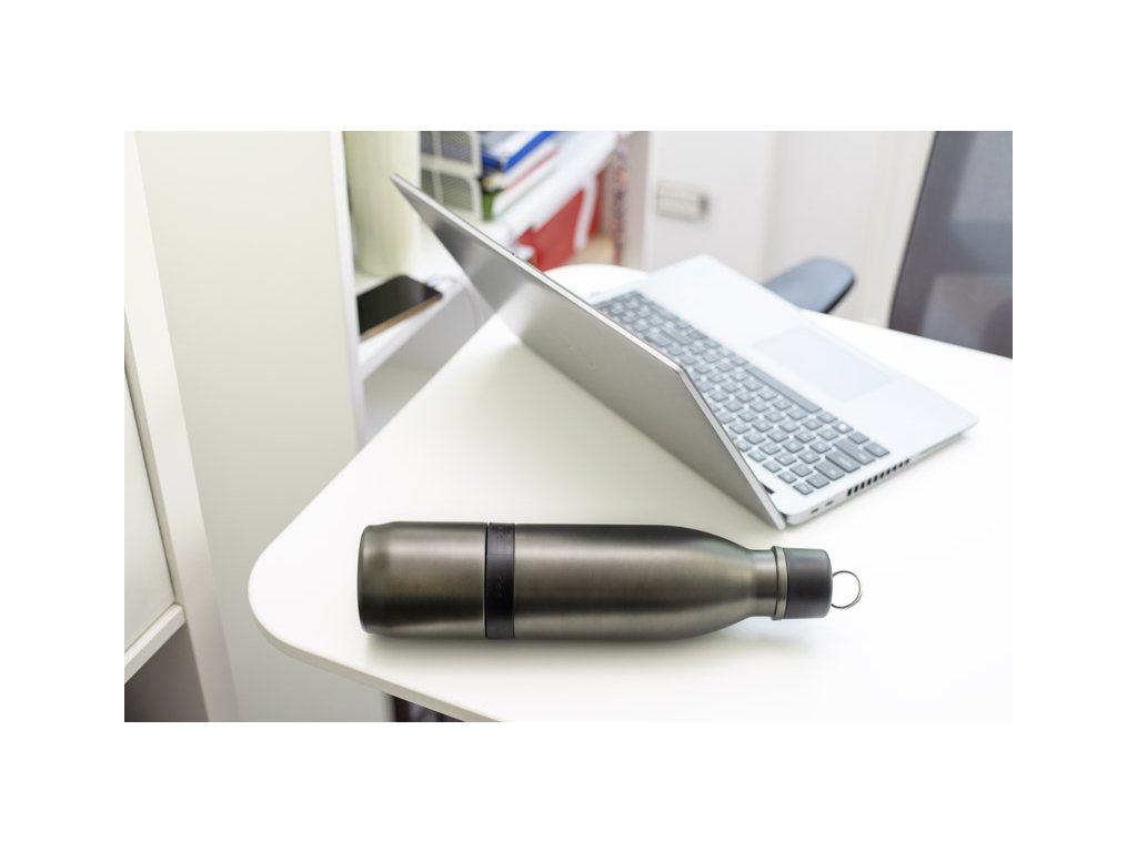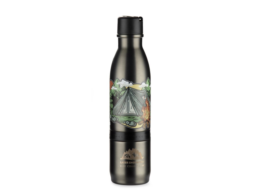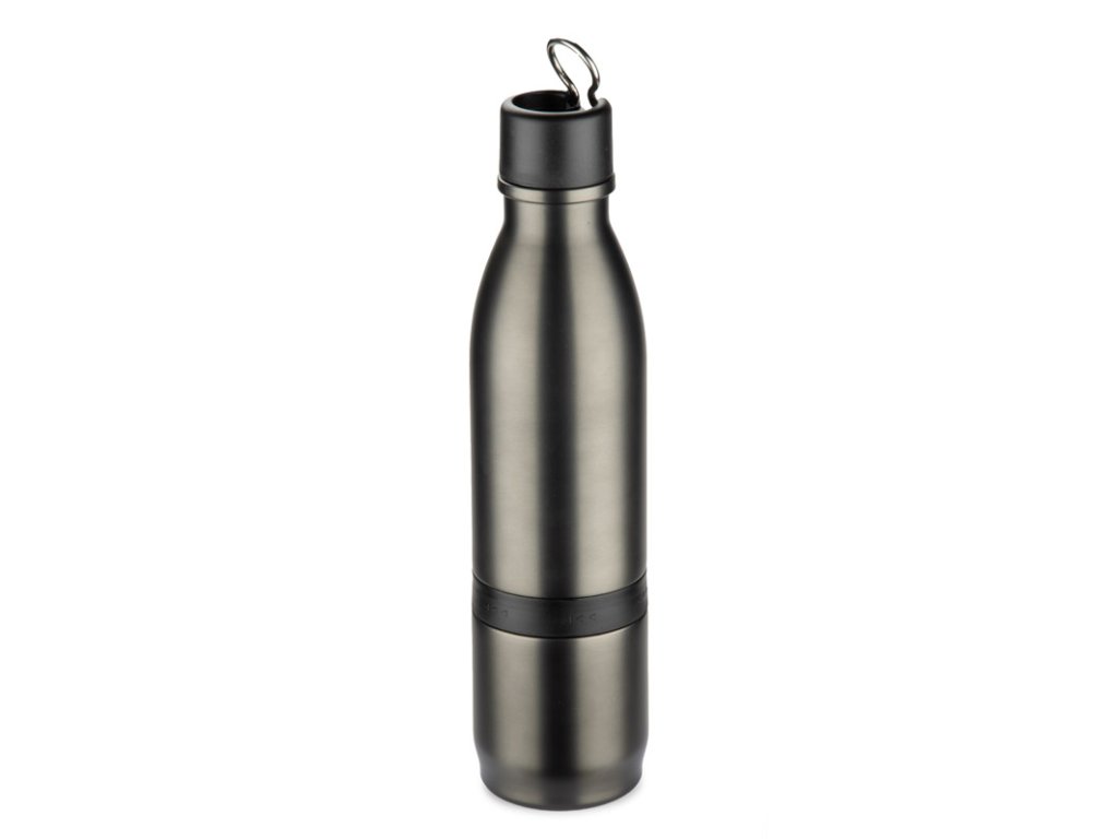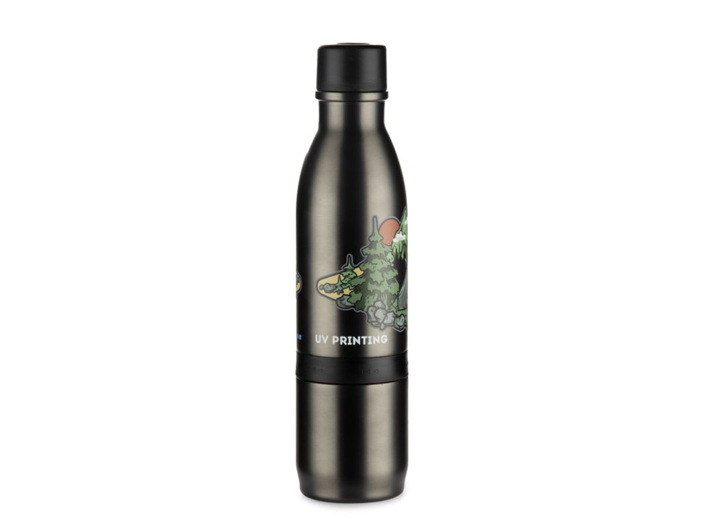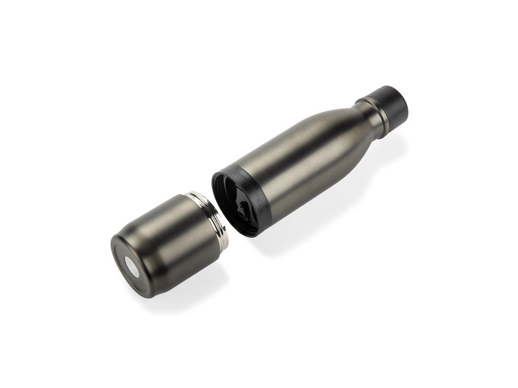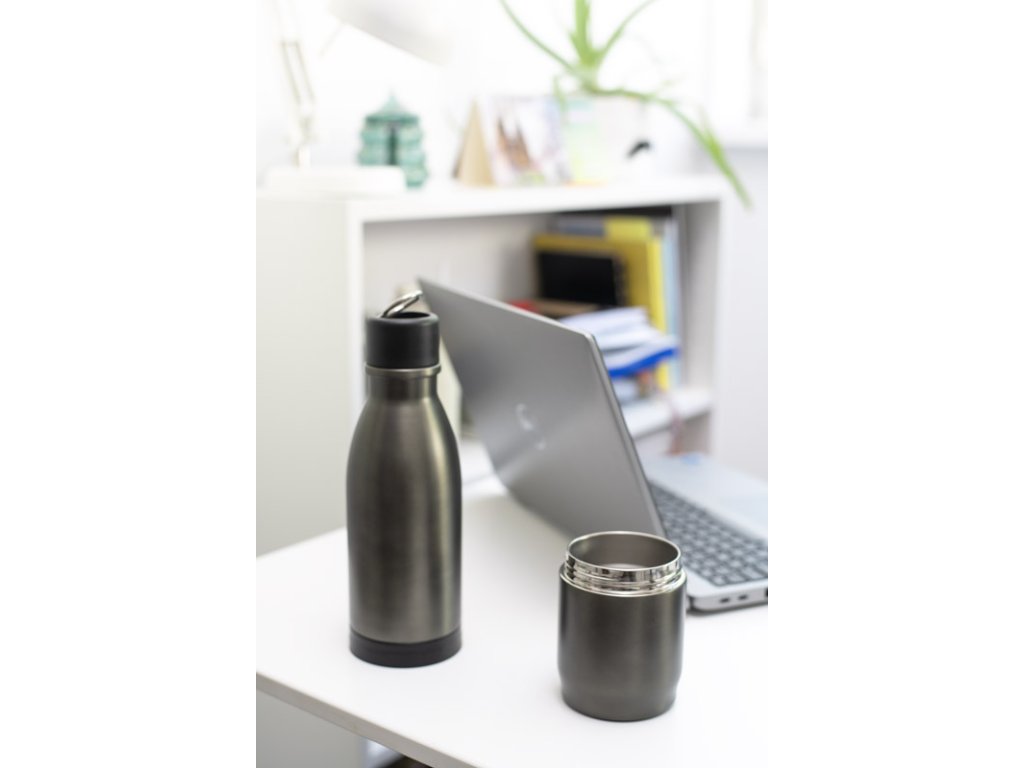 Termoska DRINNO z nerezové oceli se skládá ze dvou samostatných komor, které lze používat nezávisle na sobě. Horní část je termoska se šroubovacím víčkem vybaveným skládací rukojetí (500 ml) a dolní část je odnímatelný termohrnek s víčkem na zacvaknutí (cca 200 ml). Celý set poskytuje praktické řešení pro uchovávání teplých i studených nápojů – ideální do práce, na cesty nebo jako praktický reklamní dárek.Doplňkové parametry
