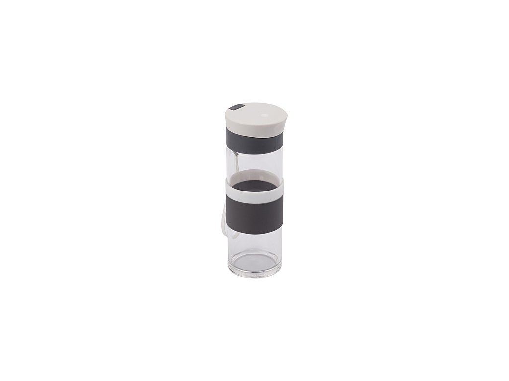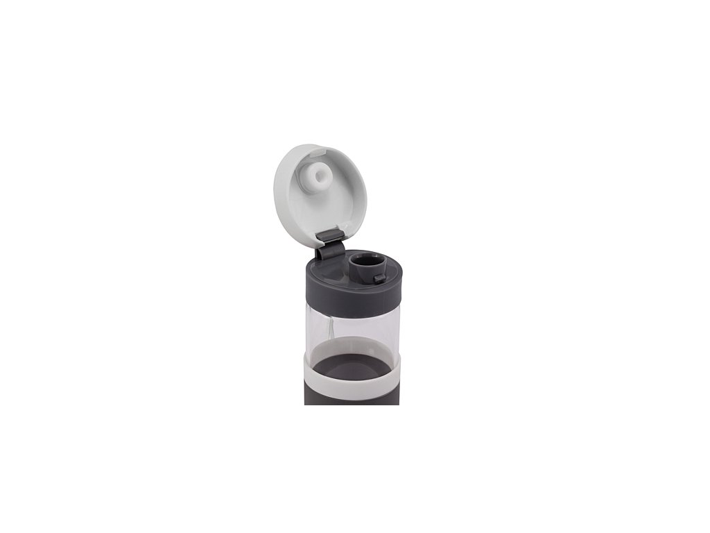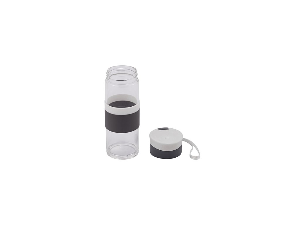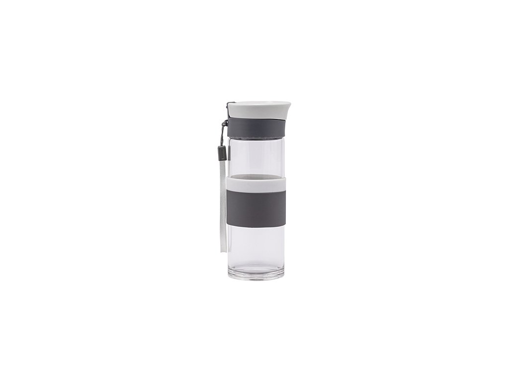 Sportovní lahev o objemu 440 ml z borosilikátového skla a plastu s popruhem na ruku, neprotékavá. Bez BPA.Doplňkové parametry