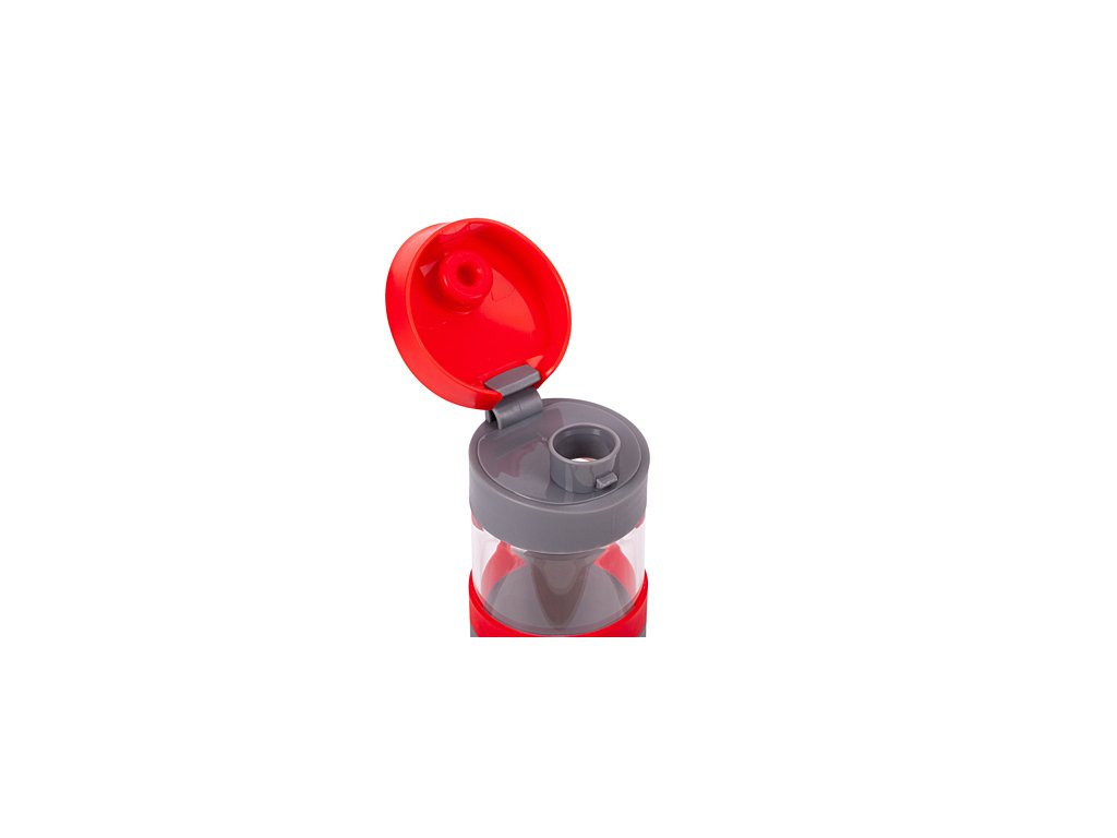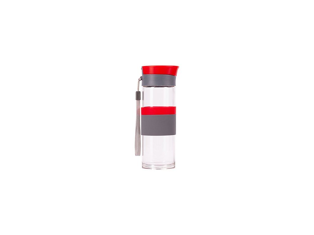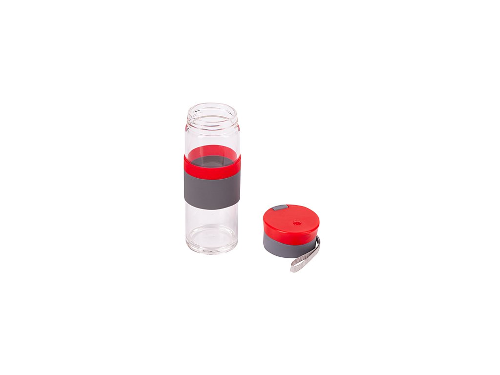 Sportovní lahev o objemu 440 ml z borosilikátového skla a plastu s popruhem na ruku, neprotékavá. Bez BPA.Doplňkové parametry