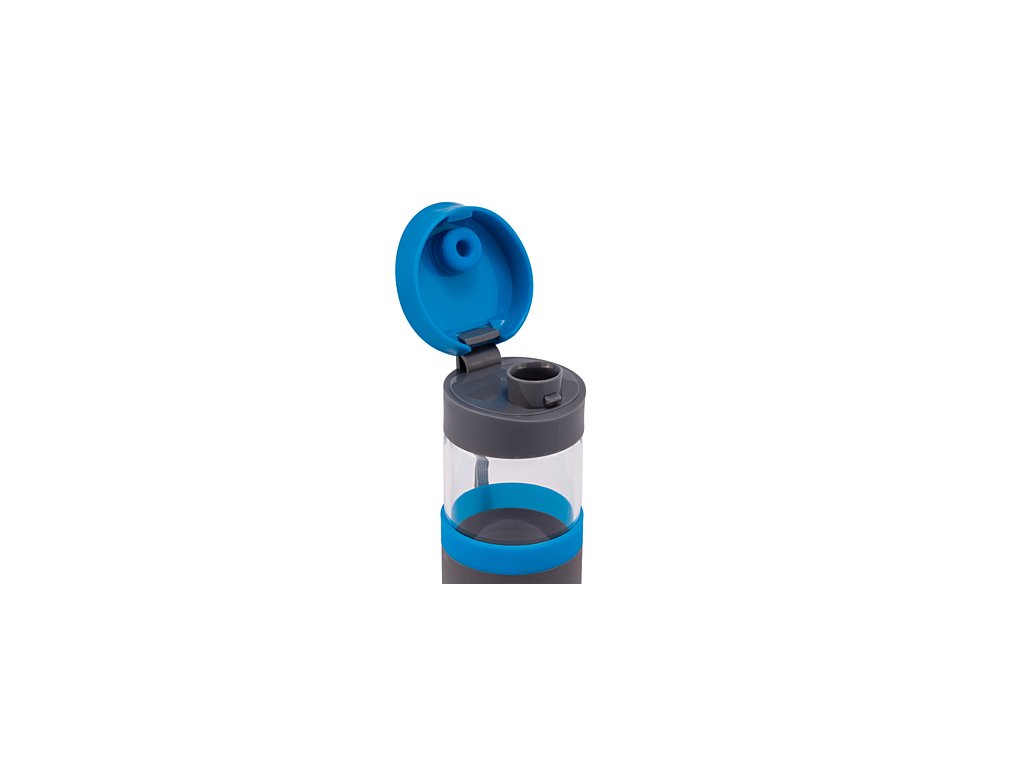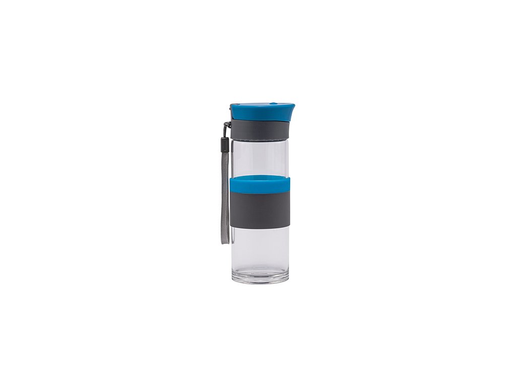 Sportovní lahev o objemu 440 ml z borosilikátového skla a plastu s popruhem na ruku, neprotékavá. Bez BPA.Doplňkové parametry