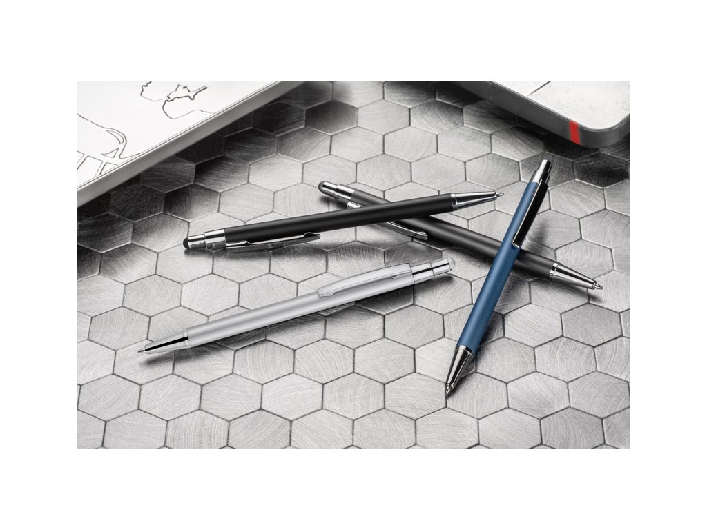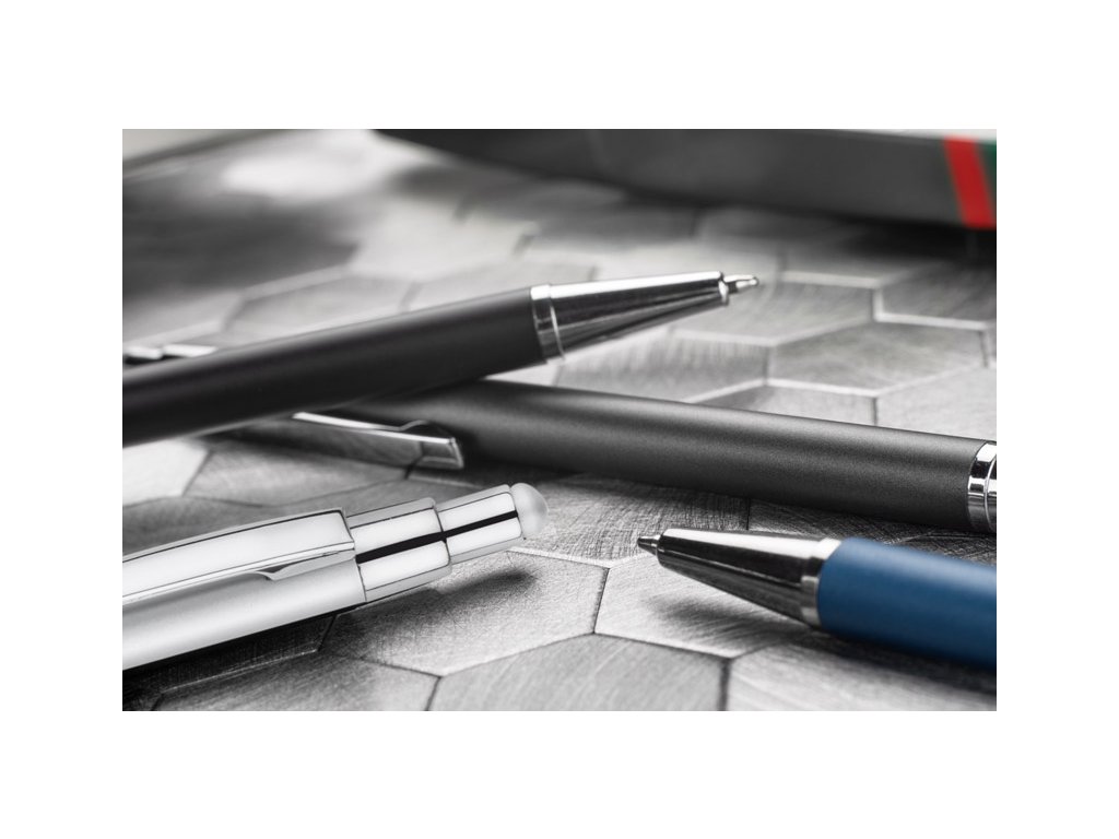 DAWEI je klasickou tenkou propiskou vyrobenou z kovu v tónovaných odstínech pro milovníky nadčasových universálních vzorů. Na hoře je vybavená hrotem na dotekové obrazovky typu „touch“, v odstínech odpovídajících barvě tělesa. Automatická propiska. Modrá náplň typu X20 s šířkou hrotu 1.0 mm.Doplňkové parametry