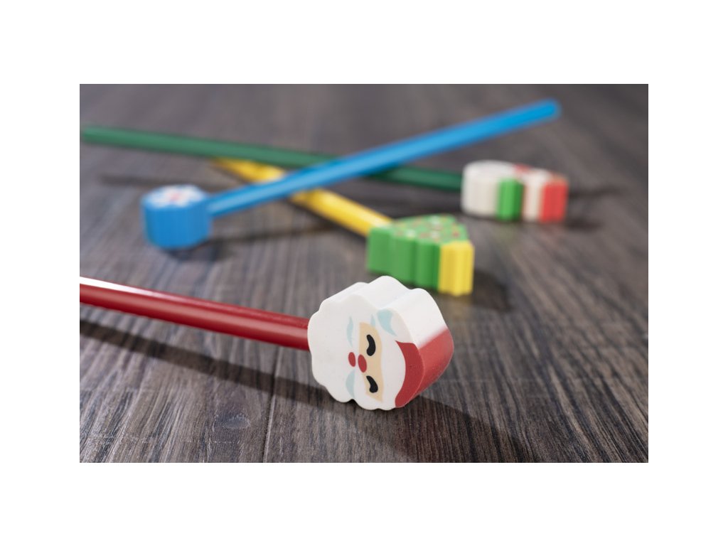 Tužka CHRISTMAS je sváteční dárek v červené barvě, zakončený gumou ve tvaru hlavy Santy. Veselý barevný akcent jí dodává sezónní nádech a upoutá pozornost nejmenších. Ideální jako doplněk k mikulášským sadám, adventním kalendářům nebo jako malá reklamní pomůcka během svátečního období.Doplňkové parametry
