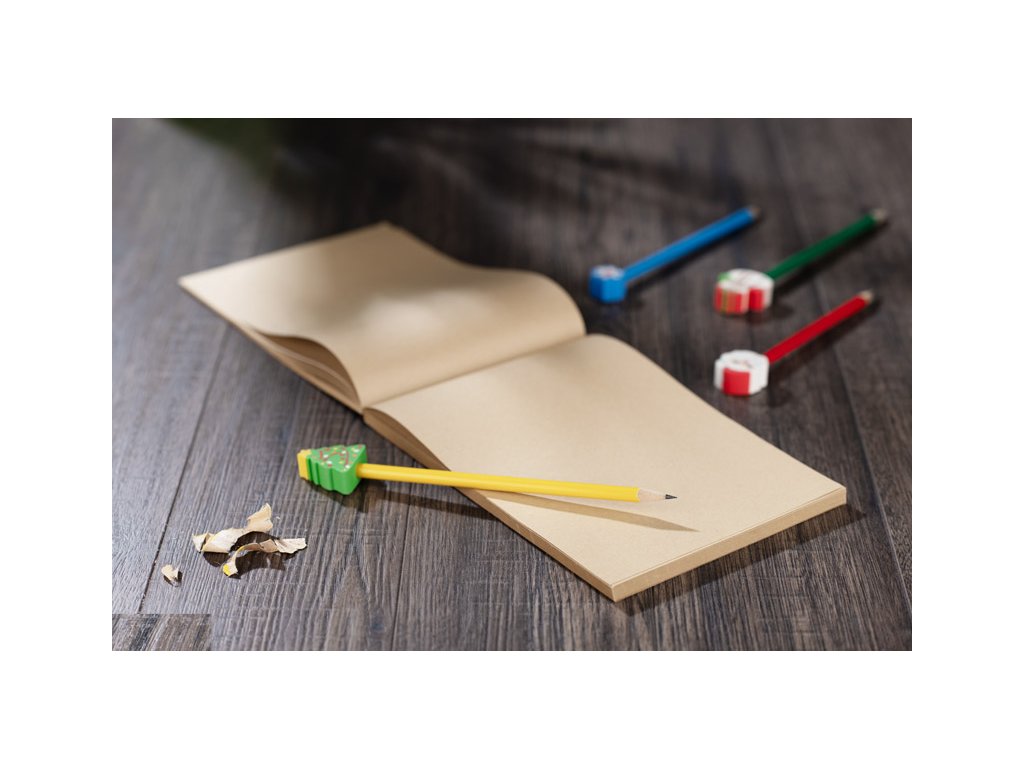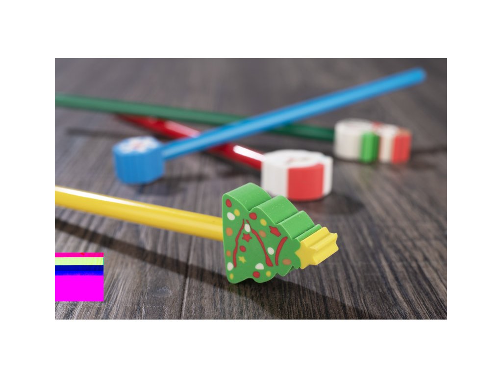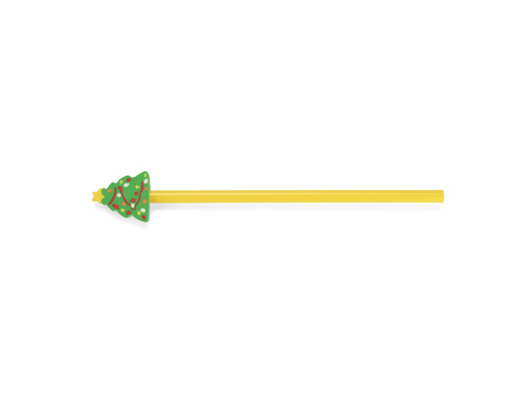 Tužka CHRISTMAS je sváteční dárek ve žluté barvě, zakončený gumou ve tvaru vánočního stromku. Veselý barevný akcent jí dodává sezónní nádech a upoutá pozornost nejmenších. Ideální jako doplněk k mikulášským sadám, adventním kalendářům nebo jako malá reklamní pomůcka během svátečního období.Doplňkové parametry