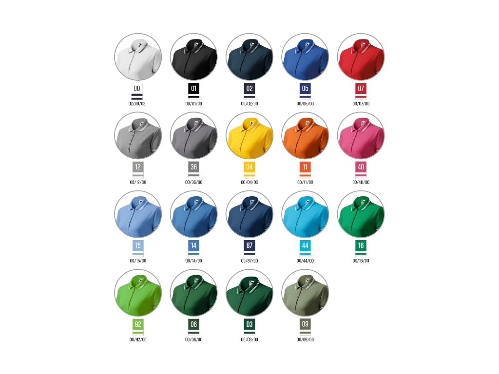 lehce vypasovaný střih s bočními švy límeček a lemy rukávů s kontrastním proužkem z žebrového úpletu 1:1 úzká léga s 5 knoflíčky v barvě materiálu vnitřní průkrčník začištěn páskou z vrchového materiálu zpevnění ramenních švů páskouDoplňkové parametry