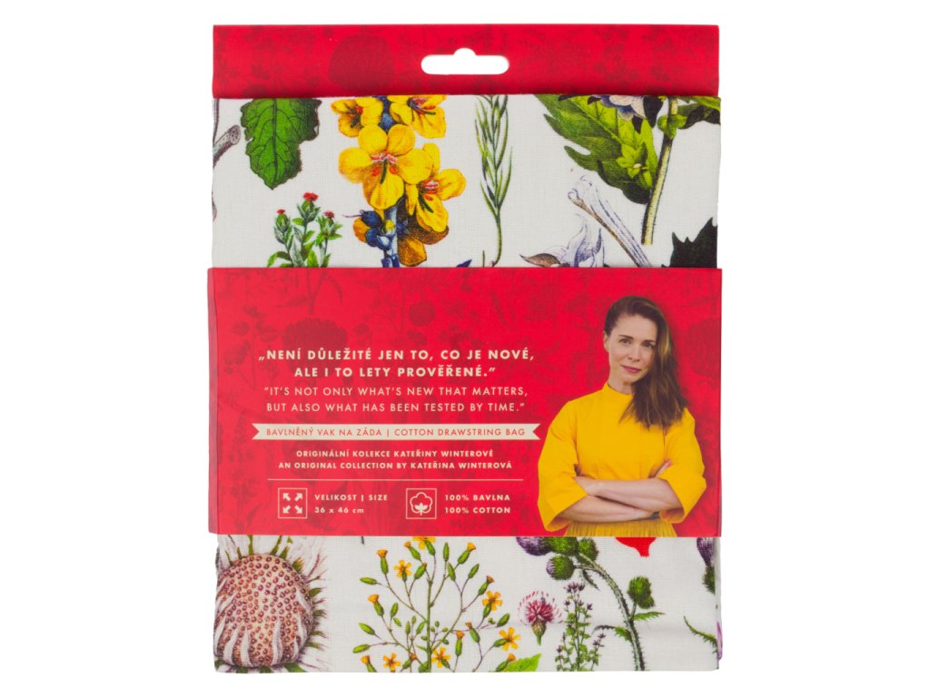 Vak na záda v béžové barvě z kolekce navržené Kateřinou Winterovou. Vak je šitý z metráže a proto má každý kus originální výřez potisku.Doplňkové parametry