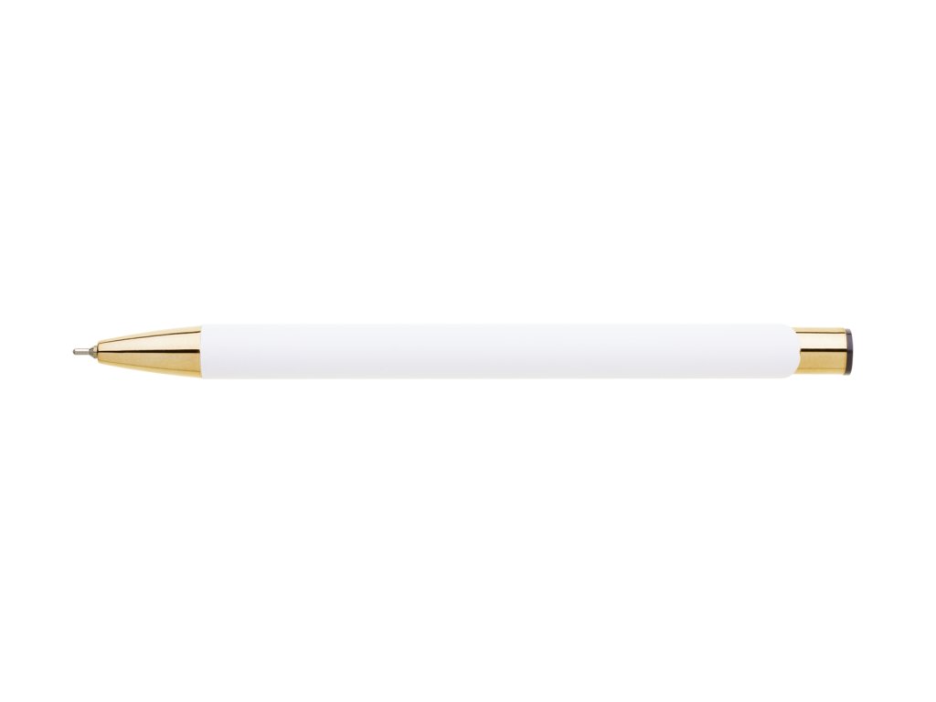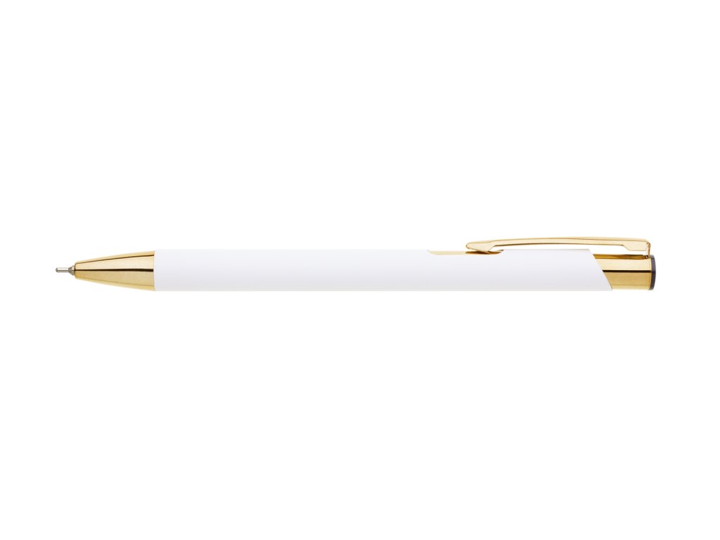 Kovová propiska s pogumovaným povrchem a zlatými doplňky, s efektem laseru v lesklé zlaté barvě. Náplň velkoobsahová semigelová.Doplňkové parametry