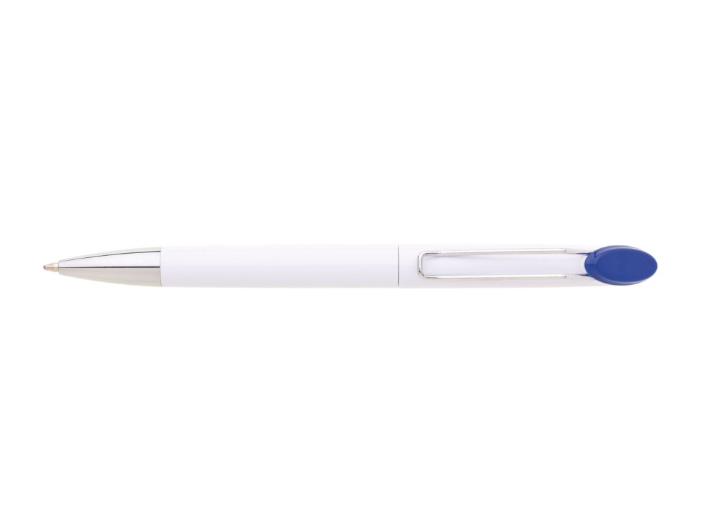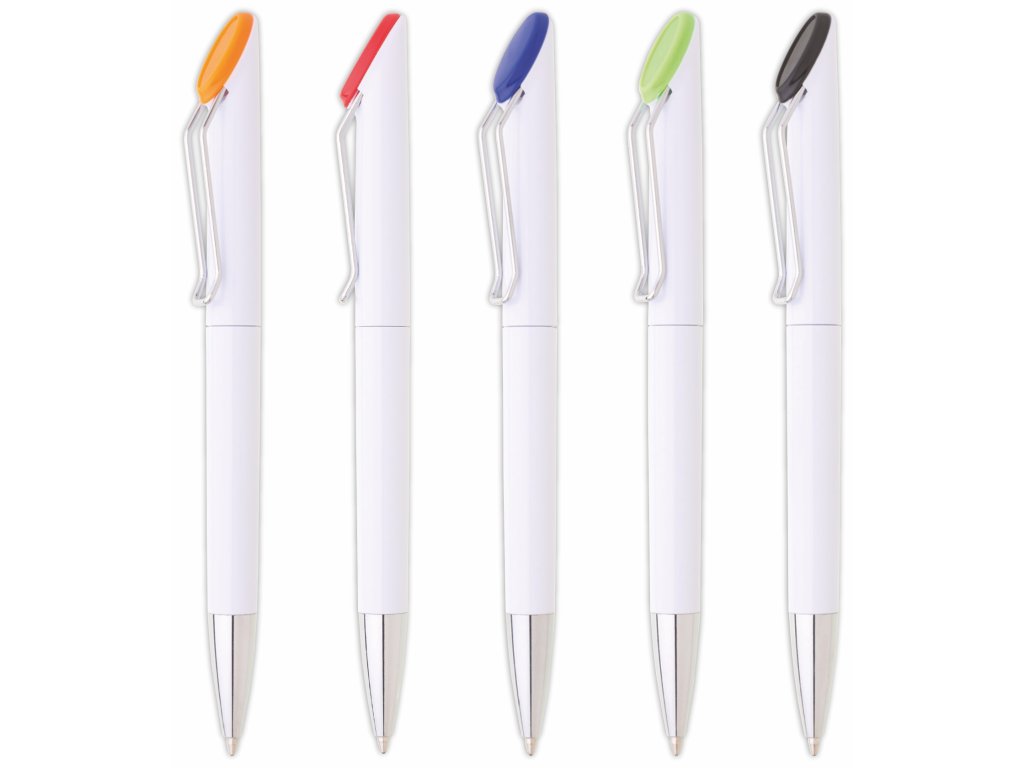 Plastová bílá otočná propiska VERENA s chromovou špičkou a chromovým klipem. Držák klipu je modrý a je možné na něj umístit epoxy samolepku. Náplň velkoobsahová, modře píšící.Doplňkové parametry