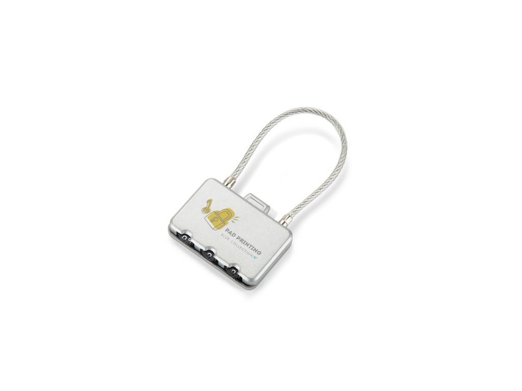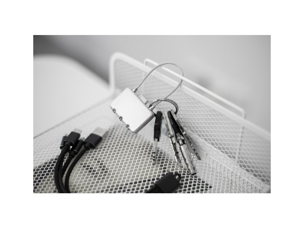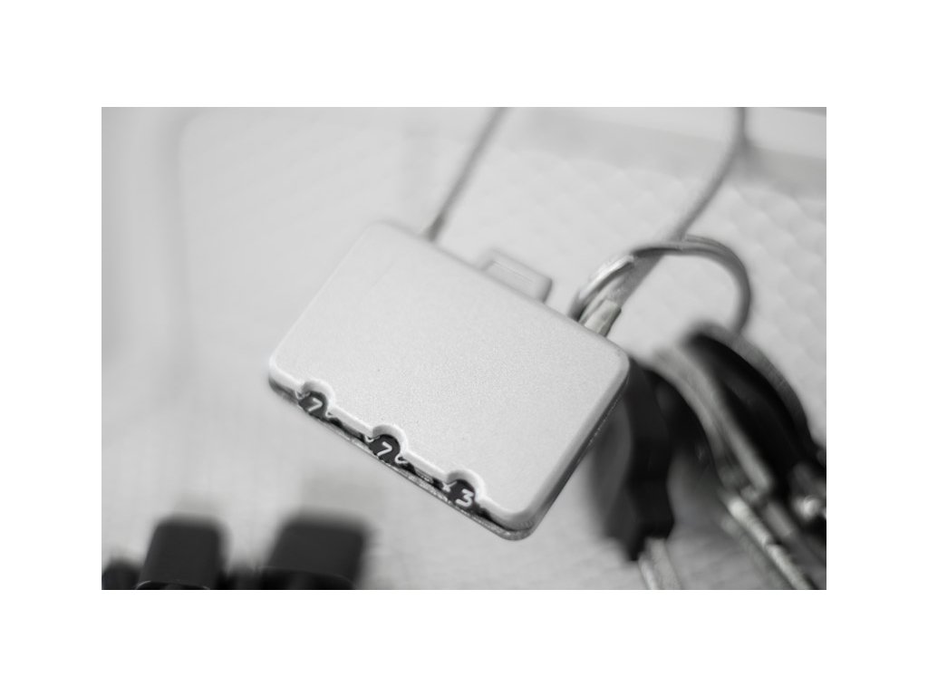 SAFE je kompaktní kovový visací zámek s kombinací - ideální pro zabezpečení zavazadel, skříňky v tělocvičně nebo kufru s poškozeným zámkem. Díky svému elegantnímu tvaru a velké označovací ploše je ideální jako funkční reklamní pomůcka. Můžete jej nosit spolu s klíči, abyste jej měli vždy po ruce - zejména při pravidelných návštěvách posilovny, kde je vyžadována vlastní bezpečnost.Doplňkové parametry