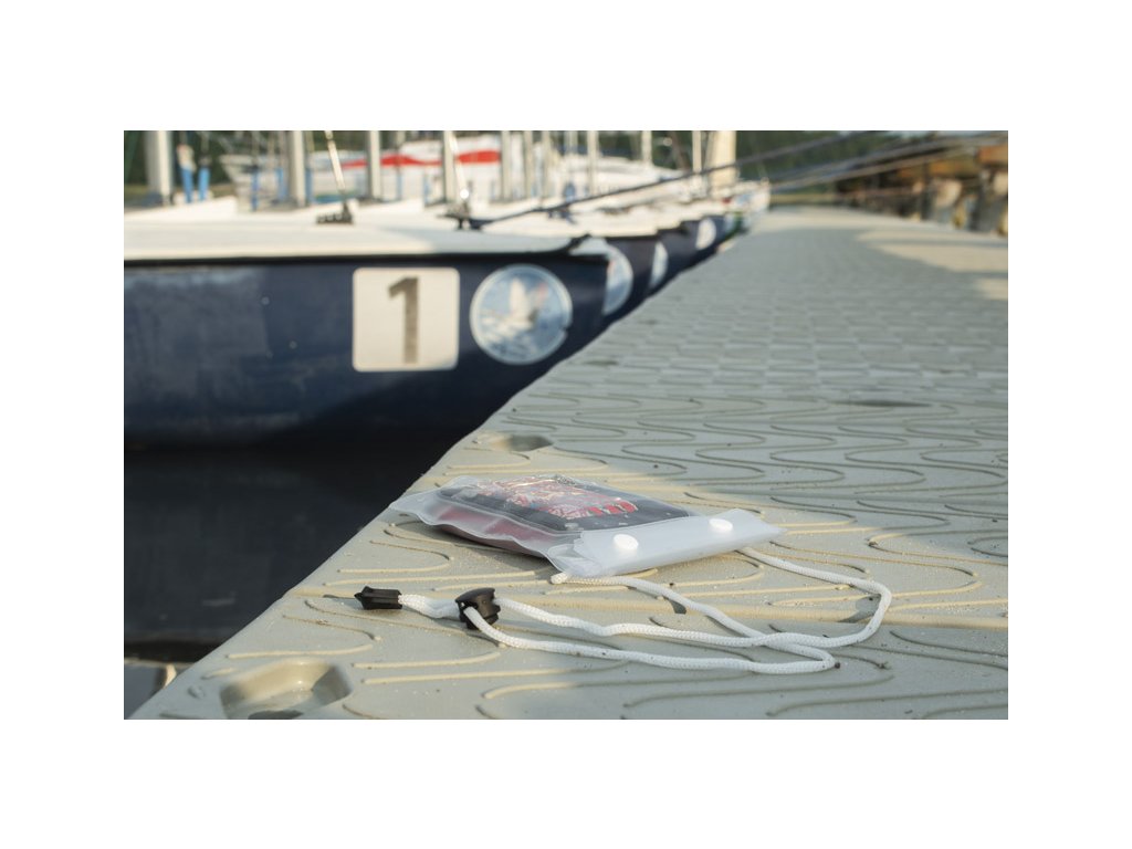 Vodotěsné pouzdro FALLA slouží k bezpečnému uložení věcí a zabraňuje jejich namočení. Má průhledné okénko, které umožňuje používat telefon s dotykovým displejem, a také šňůrku, která umožňuje zavěšení pouzdra na krk.Doplňkové parametry