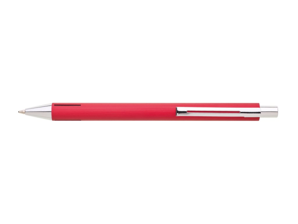 Elegantní hliníková propiska s jemně rýhovaným, červeným povrchem a stříbrnými doplňky.Doplňkové parametry