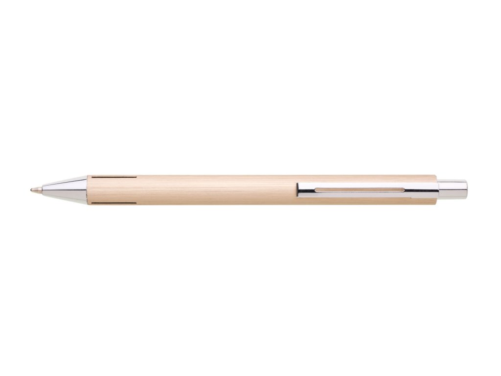 Elegantní hliníková propiska s jemně rýhovaným, zlatavým povrchem a stříbrnými doplňky.Doplňkové parametry
