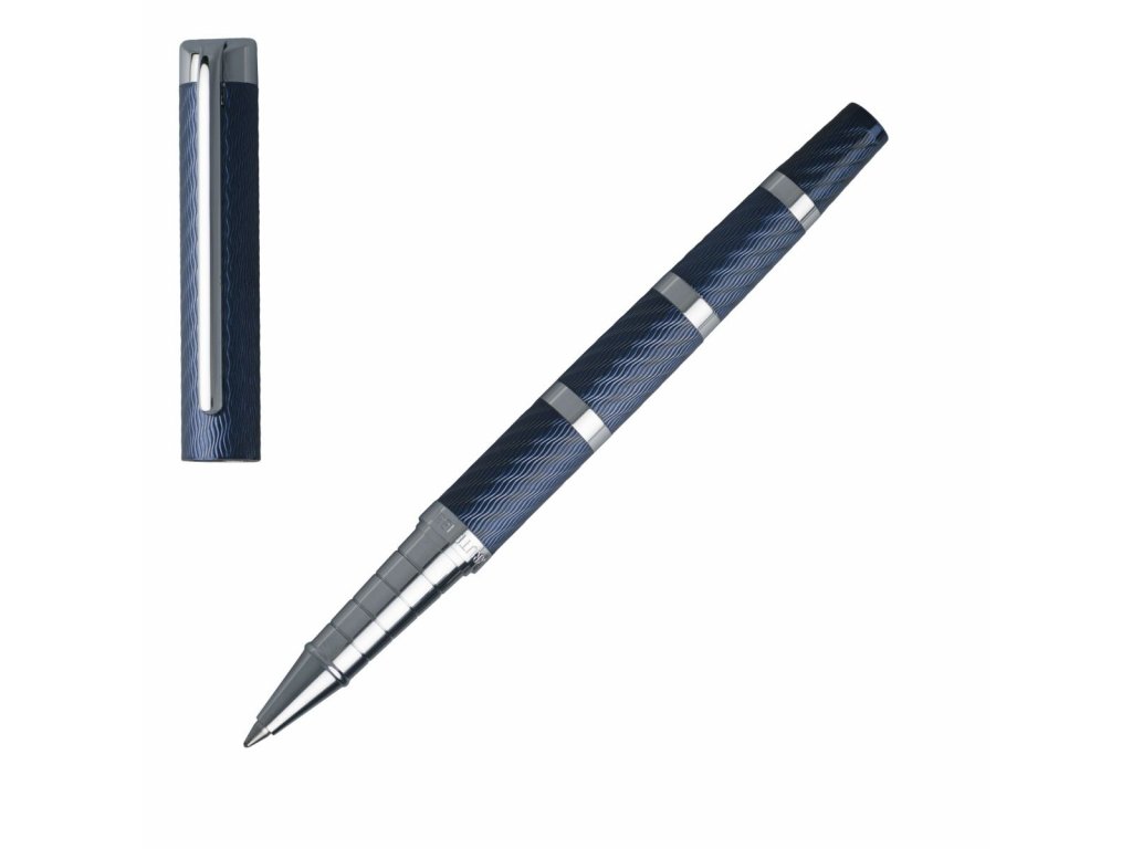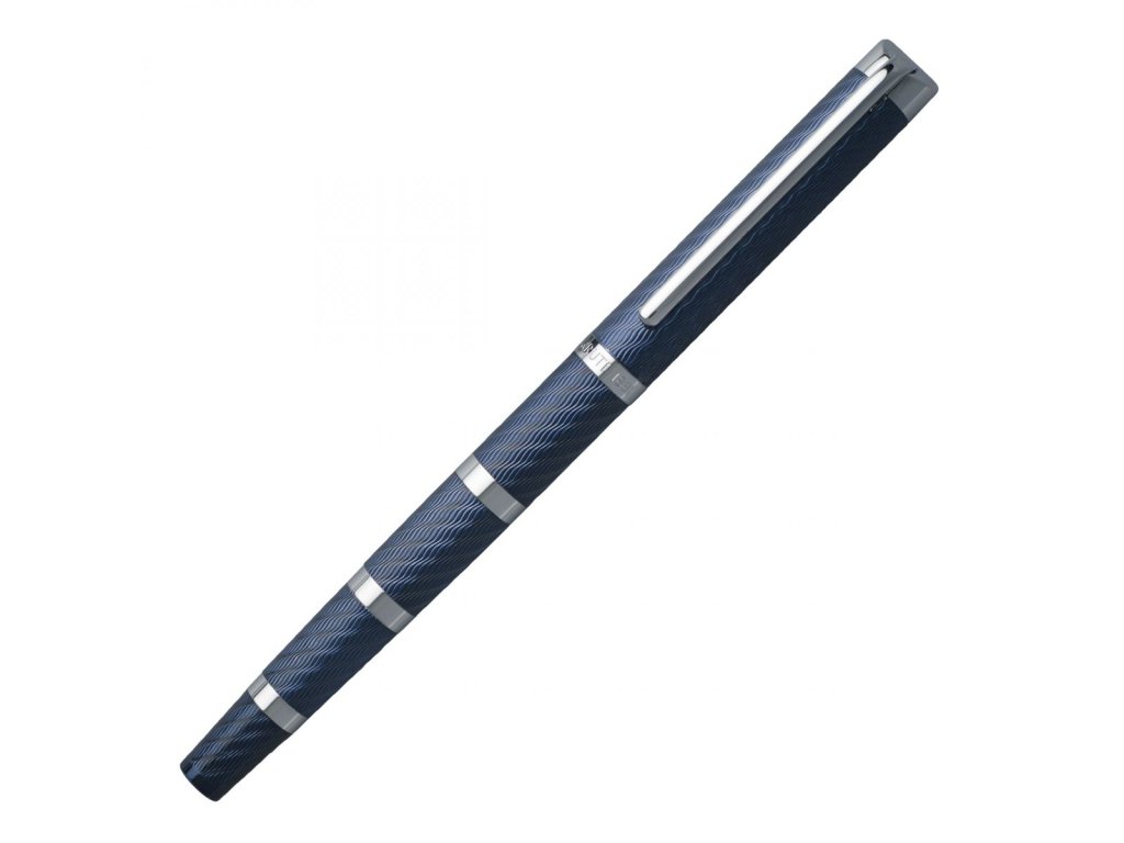 Značkový Roller CERRUTI 1881 Hoover má čistý a jednoduchý tvar těla modré barvy. Povrch je rytý drobnými vlnkami, přerušovanými chromovanými kroužky. Klip a špička jsou chromované Materiál: mosaz, lak, chrom Cena se zobrazuje po přihlášeníDoplňkové parametry